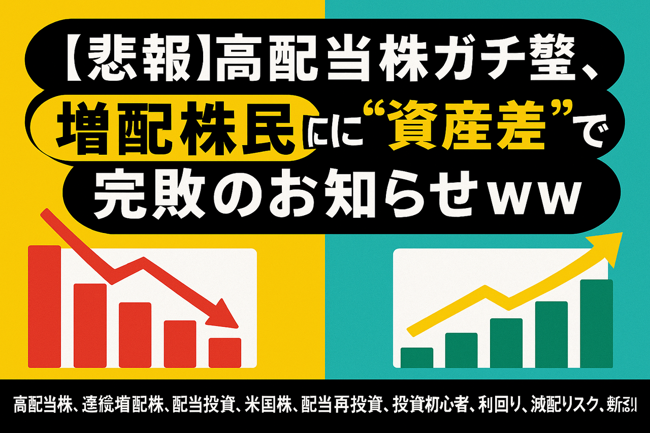 【悲報】高配当株ガチ勢、増配株民に“資産差”で完敗のお知らせww