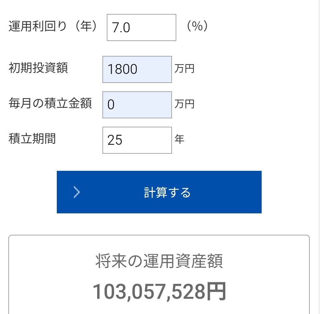 実際は単利の積み重ねだから1800万平均7%25年で増えるのは+3150万だと思っておけ