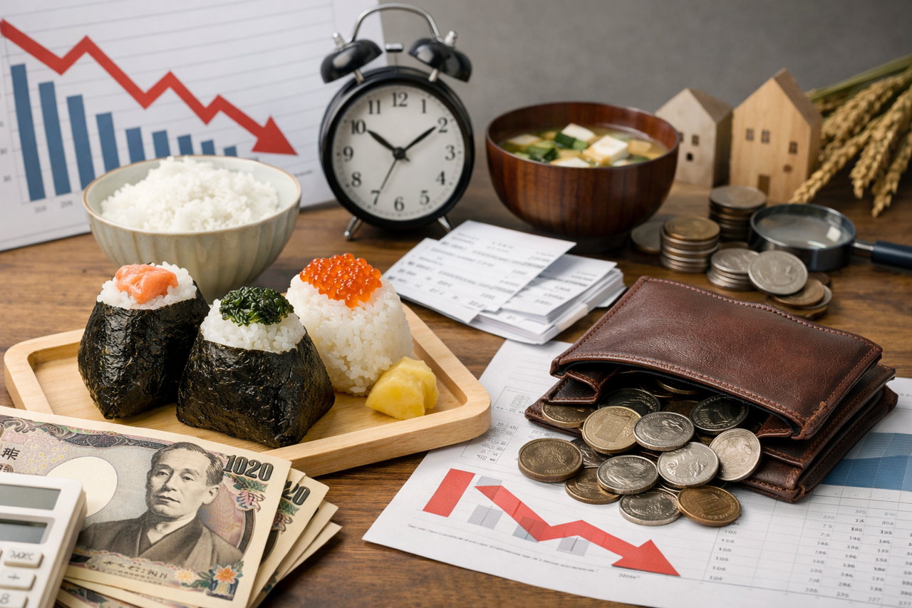 - 外食が高い:ランチ1,000円超が普通になり、300円おにぎりが相対的に“マシ”に見える