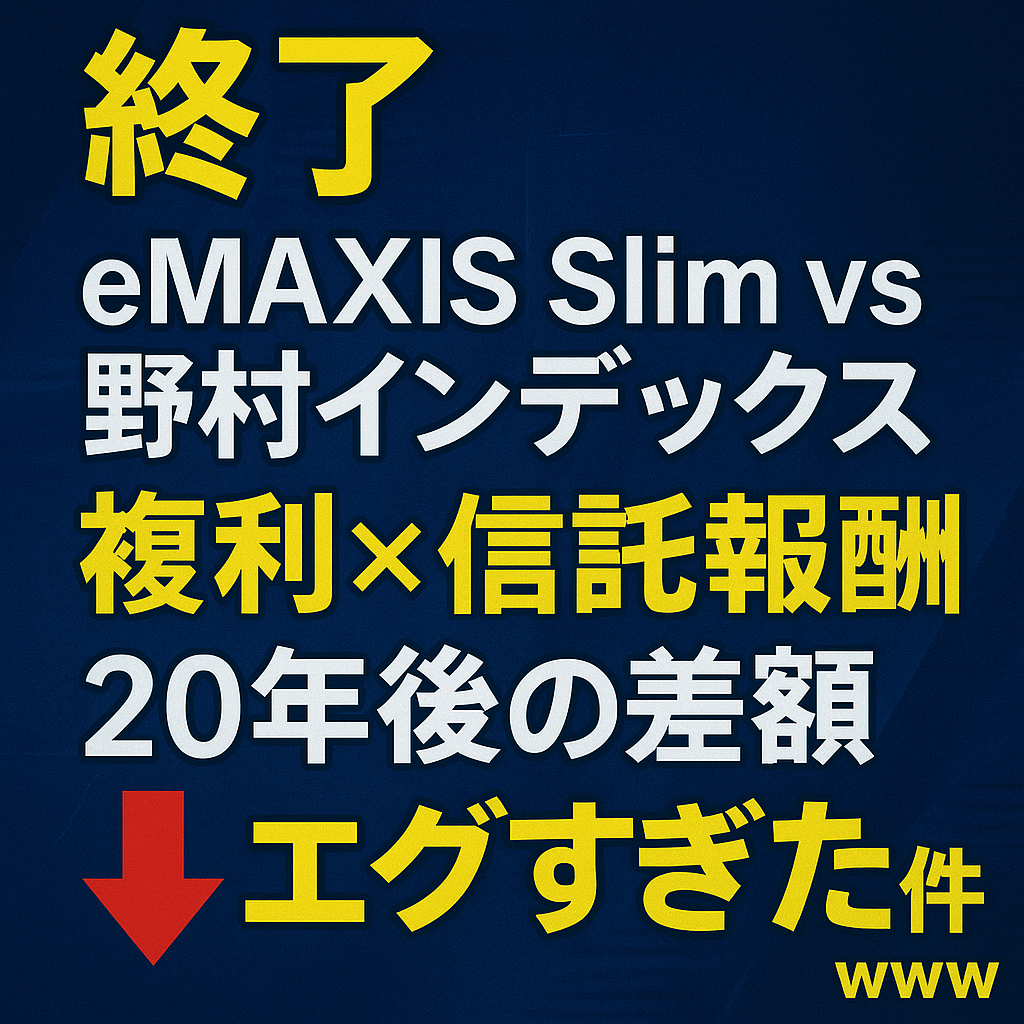 市場のリターンは読めませんが、信託報酬は毎年確実に引かれる固定費。長期ほど差が拡大します。
